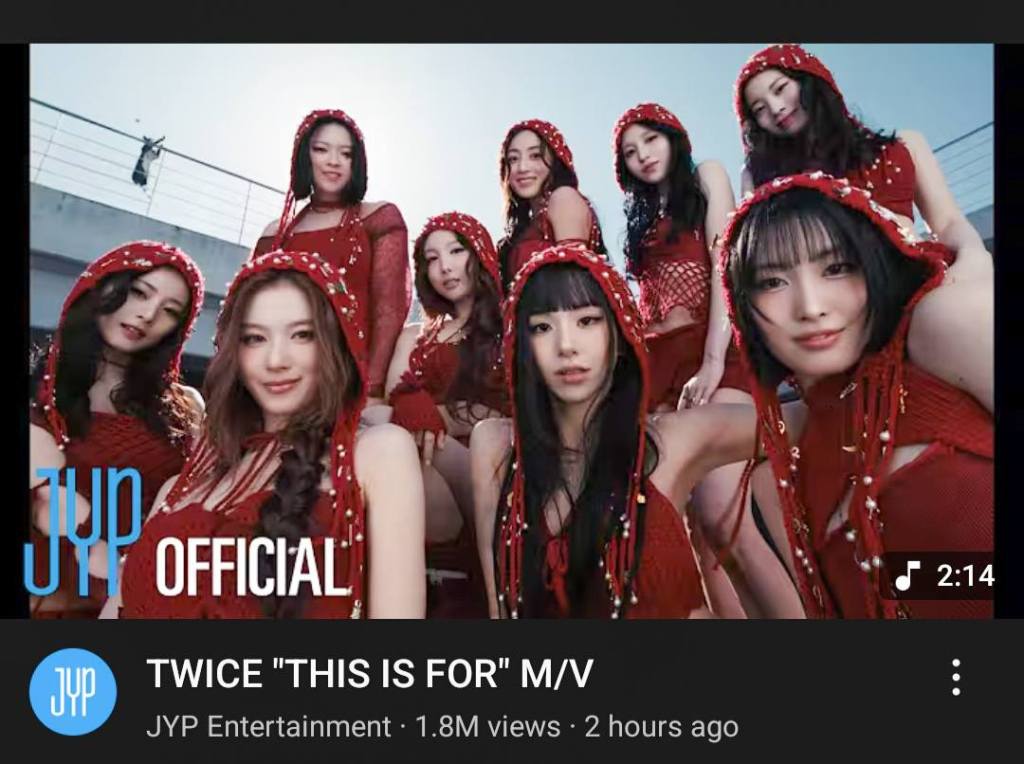 BLACKPINKโs โJUMPโ MV leads with 2.9M views in just two hours, showing their signature fierce vibe. TWICE follows with โTHIS IS FOR,โ already hitting 1.8M views, flaunting a bold, playful concept.