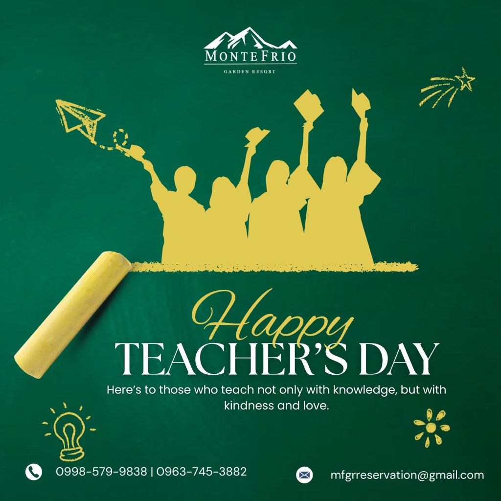 As October unfolds, Montefrio Garden Resort celebrates educators with a heartfelt tribute through its Teachersโ Week Promo. Running this week, teachers enjoy a 10% discount on all room types, a complimentary pitcher of house-blend tea with a minimum dine-in purchase, and an additional 5% off at Cafรฉ Frio with a minimum spend of โฑ1,055.